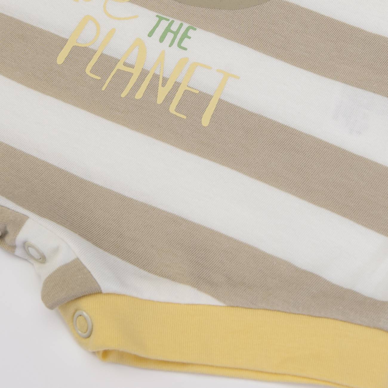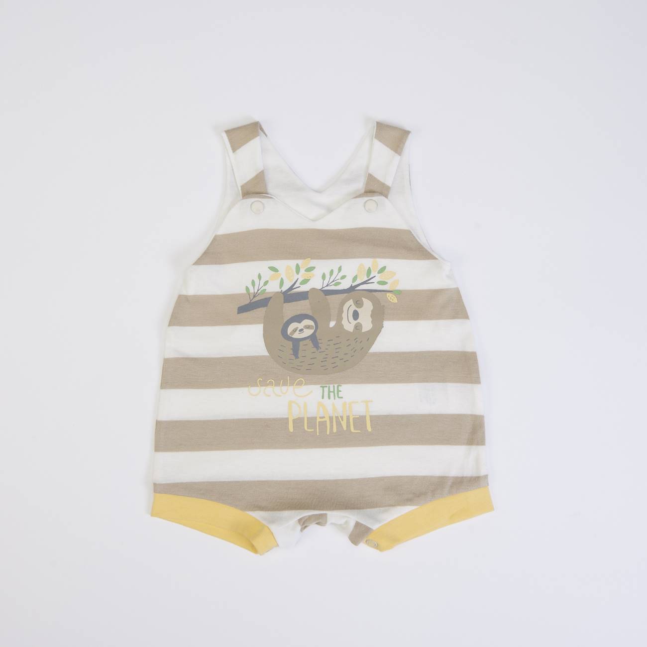 Conjunto de 2 peças em algodão orgânico: jardineira com abertura nos ombros + t-shirt de manga curta com abertura atrás
